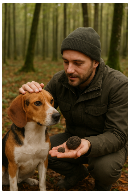 a. Truffle hunting in the forest with a specially trained truffle dog